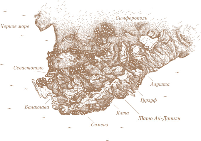 КлиматКлимат западной части Южного берега Крыма, где расположено Шато Ай-Даниль, принято характеризовать как субтропический средиземноморский. Его основные черты — засушливый, жаркий, но не знойный, с умеренно теплой зимой. Здесь, как и на берегах Средиземного моря, в течение лета стоит ясная и сухая погода, зимой осадков выпадает почти в два раза больше, чем летом. Западная часть Южного берега Крыма напоминает средиземноморское побережье по рельефу местности, видам растительности и по составу почв.